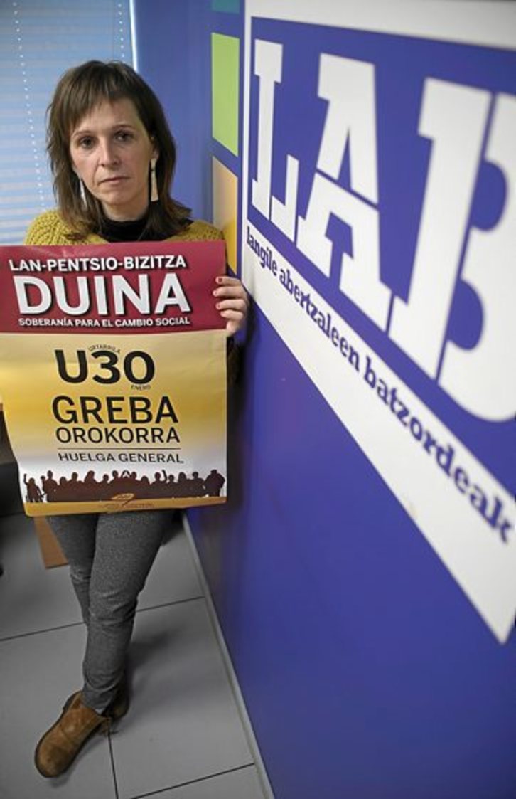 Edurne Larrañaga, una de las responsables de acción sindical de LAB, pone en valor los más de 1.200 comités de empresa que se han adherido a la huelga general y los 170 comités que se han formado en los pueblos: «Gracias a su trabajo el ambiente está más caliente».