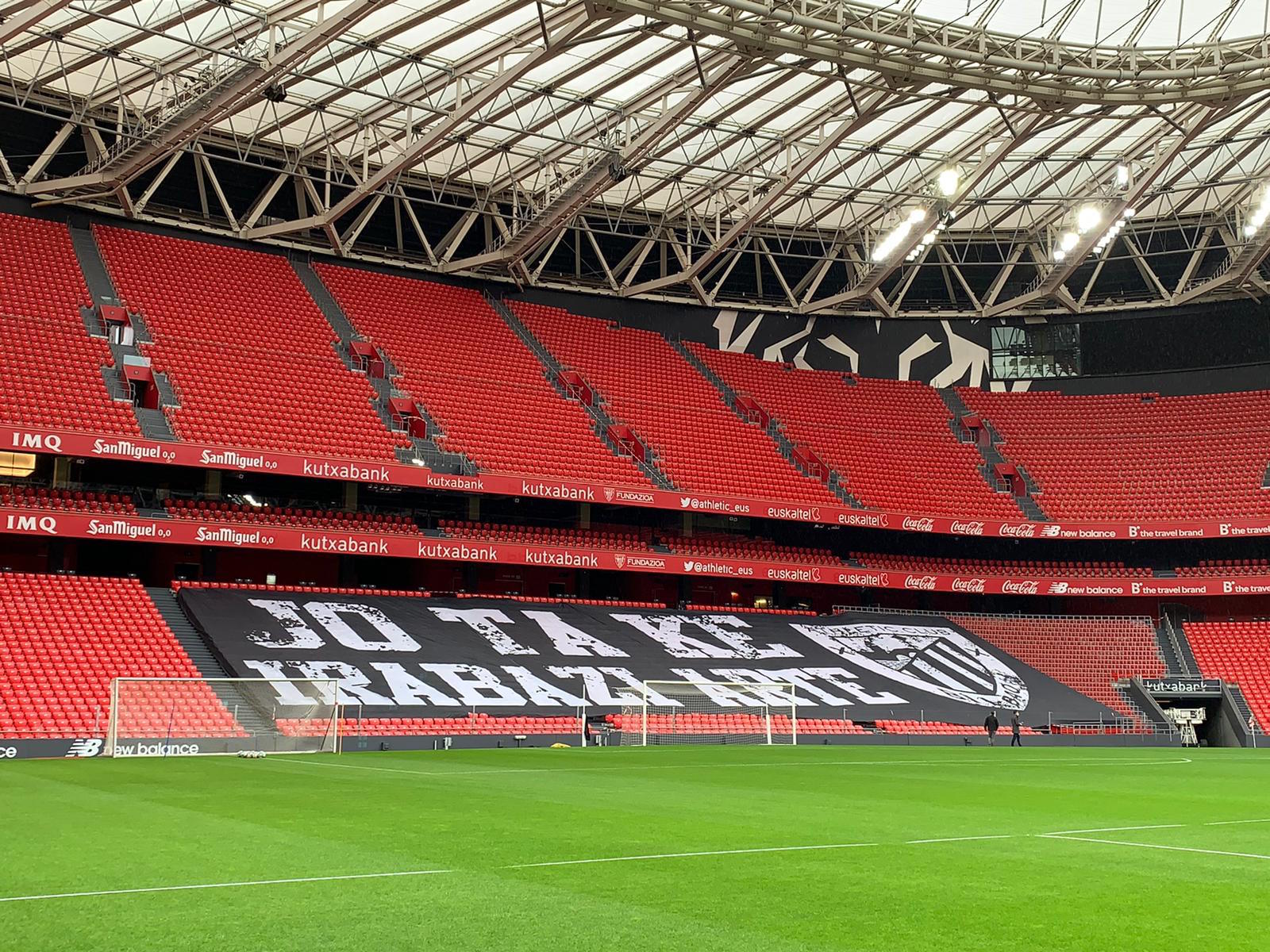 El Athletic deberá disputar seis partidos en casa en este final de Liga, y salvo sorpresa de última hora, no podrá contar con el apoyo de los aficionados. Para intentar que ese vacío se sienta lo menos posible el Athletic ha pedido a los seguidores que envíen vídeos de 10 segundos que serán proyectados en las pantallas de San Mamés durante el partido. Asimismo, en el entrenamiento realizado este jueves en el estadio bilbaino se ha visto que los fondos estarán cubiertos con lonas gigantes con lemas como ‘Jo ta ke irabazi arte’ y ‘Gurea da garaipena’.