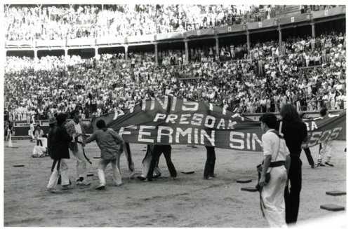 “Ez Sanfermin”-etan, 1978ko gertaerei keinua egin diegu. 42 urte igaro dira Espainiako poliziak German Rodriguez erail zuela eta presoentzako amnistia aldarrikapena zezen plazaren erdigunera atera zenetik. pic.twitter.com/w6QujiPtiN