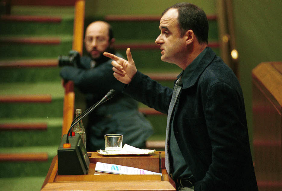 En la imagen, el actual presidente del Gipuzku Buru Batzar en la tribuna de oradores. Era el año 2000, y para entonces ya era un experimentado orador con diez años de ‘mili’ a sus espaldas.