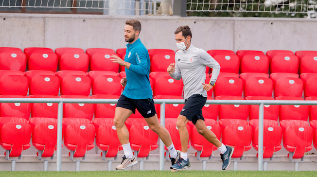 El entrenamiento de este martes en Lezama se ha celebrado a puerta cerrada y el club rojiblanco ha difundido una fotografía de Yeray realizando carrera continua al margen del grupo. Parece complicado que el central esté disponible para salir de inicio el jueves. En las imágenes de la sesión enviadas a los medios tampoco se ha visto a Yuri y Nolaskoain realizando ejercicios junto al resto.
