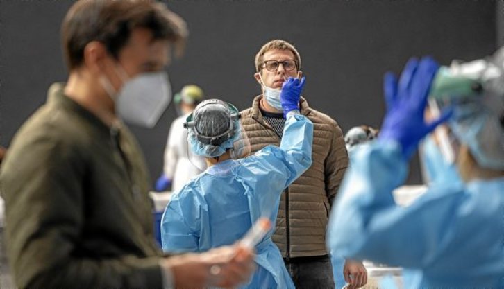 Los contagios experimentaron un leve descenso en Hego Euskal Herria al pasar de los 1.388 del viernes a los 1.154 del sábado, pero se sigue manteniendo una elevada cifra de nuevos casos de covid-19 y los datos siguen siendo preocupantes.