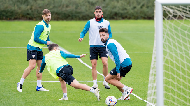 El primer equipo rojiblanco ha comenzado este martes a preparar el partido del sábado a las 16.00 horas ante el Sevilla en San Mamés. En la sesión completada esta mañana se ha podido ver a Peru Nolaskoain entrenando con el grupo, pero ha vuelto a lesionarse al torcerse el tobillo. El de Zumaia no ha entrado en ninguna convocatoria esta temporada por lesión tras regresar en verano de su cesión en el Deportivo.
