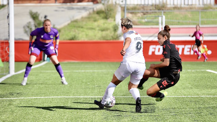 Con novedades en el once –Etxezarreta e Itxaso han sido titulares por primera vez, tomando el testigo de Mendoza y Gemma Gili–, las donostiarras han afrontado el partido con el mismo carácter que en jornadas anteriores y han intentado cercar la portería de Paula en el primer tiempo. Eizagirre o Núria han podido marcar; más aún Franssi, que ha enviado un chutazo al larguero. Pero la que ha acertado ha sido la de casi siempre, Priscila, que la semana pasada ya sentenció el partido de Unbe y hoy ha hecho lo mismo con el de Matapiñonera, anotando el 1-0 a ocho minutos del descanso.