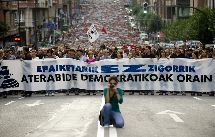 El malestar provocado por la decisión del Supremo español de volver a juzgar a Arnaldo Otegi y sus compañeros ha tomado cuerpo en una convocatoria plural para este sábado a mediodía. Llaman a salir a la calle en todas las localidades vascas a las 12.00 para trasladar esta demanda: «Demokrazia». La iniciativa alcanza tanto a la CAV como a Nafarroa e Ipar Euskal Herria.