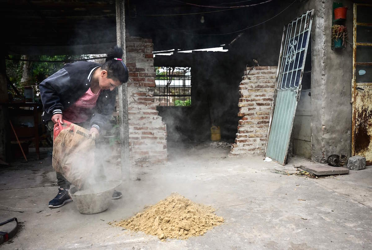 «Ser albañila me pone contenta porque a las mujeres mucho tiempo nos dijeron que no. Me gusta contárselo a mi papá, que es el que más se sorprende y menos fe le tenía», comenta Bárbara Burruchaga, de 21 años, mientras acarrea los materiales para renovar un antiguo centro cultural en las afueras de Buenos Aires (Argentina).