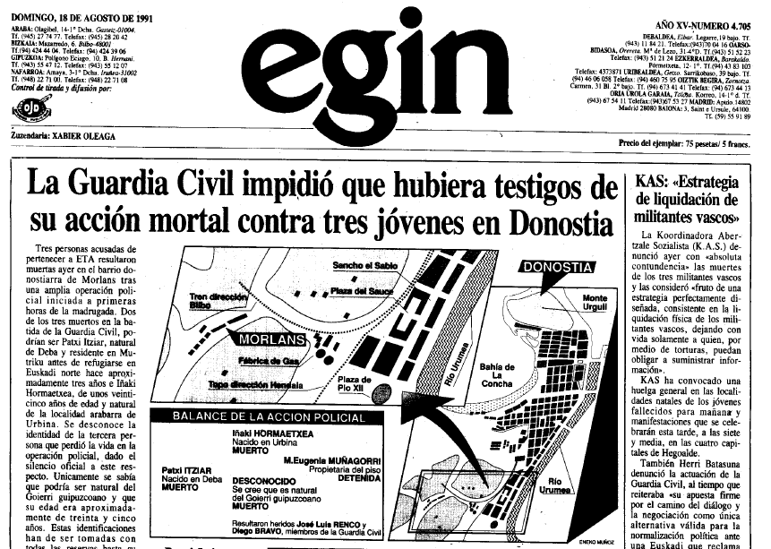 ETAko hiru kideren bizitza errotik moztu zuen Guardia Zibilak gaur dela 30 urte Donostiako Morlans auzoan. Metrailetaz, granadaz eta ke potez lepo, bene-benetako gerra ekintza izan zen, «hiltzera tiro egin» irizpidearen apoteosia.