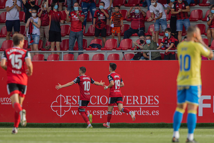 Iñigo Vicente ha vuelto a marcar esta jornada en la victoria por 4-2 del Mirandés ante el Las Palmas. El de Derio, que se encuentra cedido por el Athletic al igual que el lateral izquierdo Imanol García de Albeniz, dio también una asistencia de gol. Ambos jugadores marcaron también en la victoria contra el Amorebieta por 2-0. Vicente apenas tuvo oportunidades la temporada pasada en el primer equipo del Athletic y en estos primeros partidos está siendo uno de los baluartes del Mirandés.