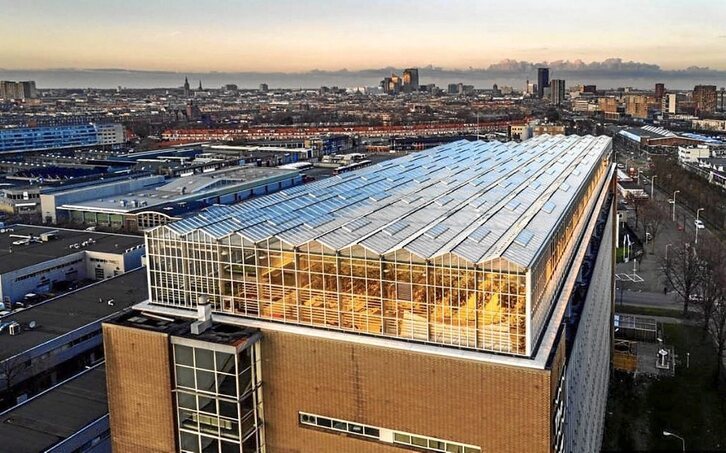 El edificio original, construido en la década de 1950 por el arquitecto Dirk Roosenburg, fue en origen una fábrica de televisores y teléfonos de Philips. En el año 2013, el ayuntamiento de La Haya lanzó un concurso para que las empresas de alimentos sostenibles propusiesen nuevos usos para el edificio que antes estaba vacío. Urban Farmers ganó el concurso y recibió apoyo del ayuntamiento, y con el la oportunidad de alquilar el espacio de la última planta y la cubierta donde levantó el invernadero.