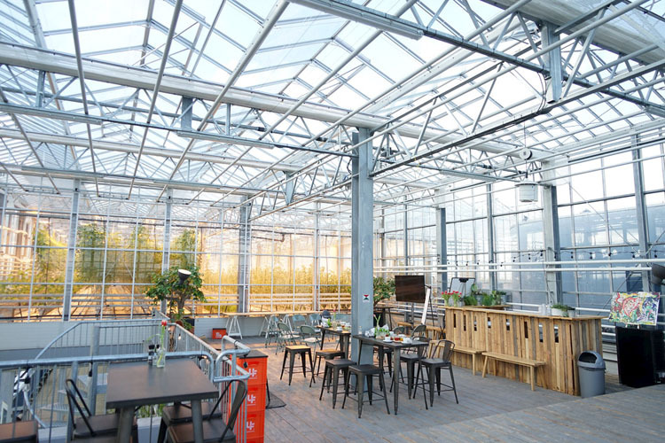 El proyecto cuenta además con una tienda y un pequeño restaurante, y comercializa sus productos mediante una caja que sus clientes recogen semanalmente. En ese sentido, además de una granja es un lugar de encuentro para la educación, la investigación y la innovación. La reutilización de este edificio emblemático es más allá de su rendimiento agrícola, un ejemplo en cuanto a medios alternativos de producción sostenible de pescado y verduras, así como una oportunidad única para cultivar en tierras que están baldías o no utilizadas, como pueden ser las cubiertas de los centros comerciales o de los polígonos industriales.
