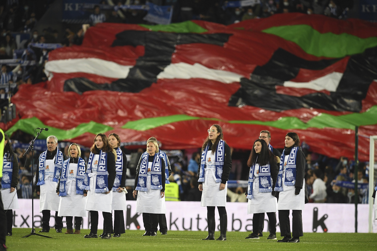 Antes del partido el Orfeón Donostiarra ha interpretado la Marcha de San Sebastián y todo Anoeta ha tocado la tamborrada con sus palmas. Más lamentables han sido los incidentes registrados en los prolegómenos, al lanzarse objetos contra el autobús del Atlético de Madrid, con enfrentamientos con la Ertzaintza y resultar herida una persona en una calle cercana al Reale Arena.