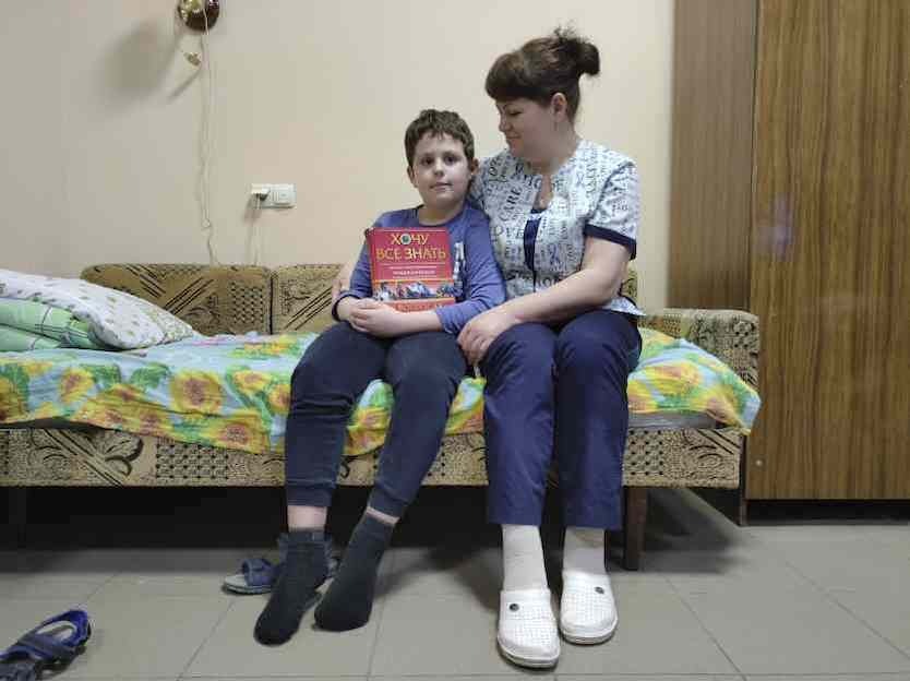 «Algunos compañeros han perdido sus casas por los bombardeos o porque su localidad ha quedado bajo ocupación rusa. Ante esta situación, la dirección del hospital permite que nos instalemos aquí con nuestras familias porque teme quedarse sin trabajadores», comenta la sanitaria. Es el caso de Oxana, su marido e hijo Andrei de 7 años, quienes llevan tres semanas viviendo en el centro sanitario porque su barrio es objetivo de los ataques. «Mi hijo tiene mucho miedo y aquí nos sentimos seguros. Mi marido sale para hacer frecuentes visitas a su madre y Andrei ahora comienza a querer dar algún paseo en los alrededores del hospital», explica la enfermera del equipo de Natalia..