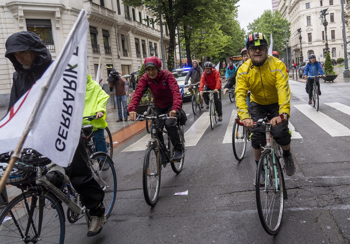 La decimocuarta Marcha Ciclista contra la Guerra, el Gasto y la Industria Militar ha recorrido este sábado por la mañana varias localidades de Bizkaia y Nafarroa para exigir «el fin del gasto militar, el tráfico de armas y la conversión de la producción de las empresas de armas en civil».