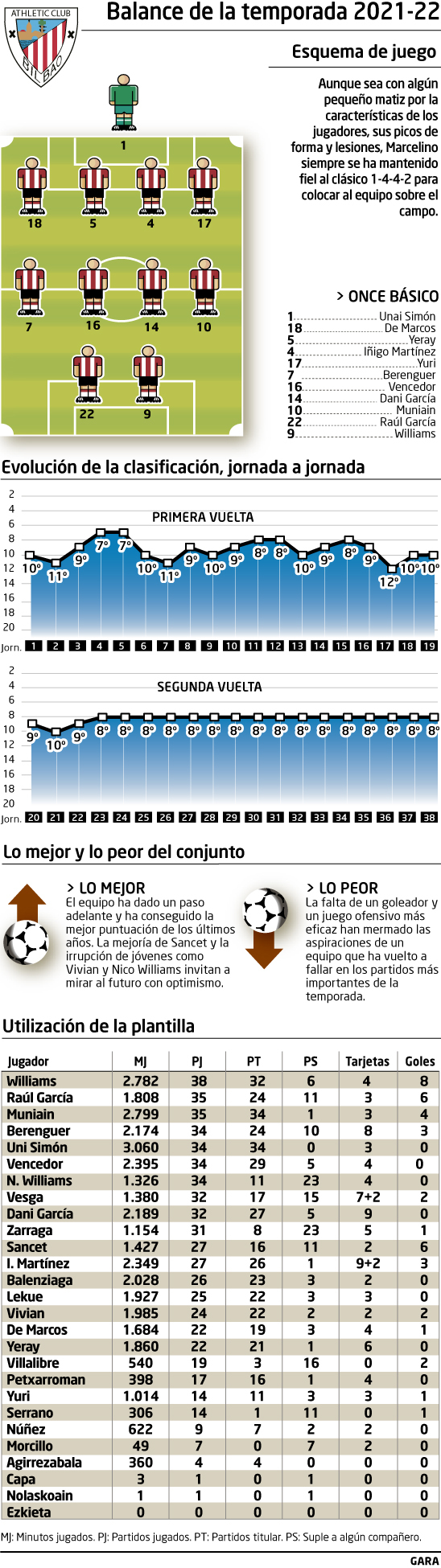 Esa sensación agridulce ha condicionado la valoración del trabajo de Marcelino y la falta de confianza de los precandidatos a Ibaigane ha desencadenado su despedida. La duda que se plantea es si hay plantilla para aspirar a más.