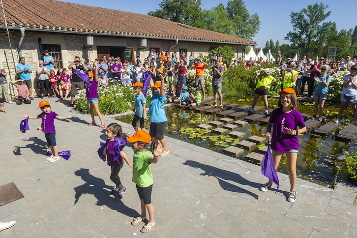 Ibilbideari ekin baino lehen, Argantzun ikastolako zortzi ikaslek dantza bat egin dute “Zortzi alaba dantzari” abestiaren doinuan.