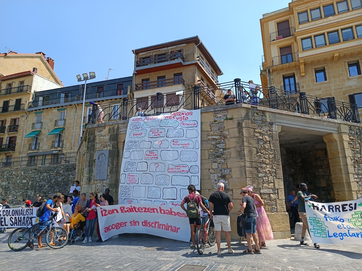 La movilización ha finalizado en el Boulevard donostiarra con la lectura de un manifiesto suscrito por las 18 organizaciones participantes en el que se pide que se garantice que las personas migrantes y refugiadas puedan llegar al Estado español y a Euskal Herria «sin poner su vida en riesgo, facilitando vías legales y seguras de acceso al procedimiento de asilo».