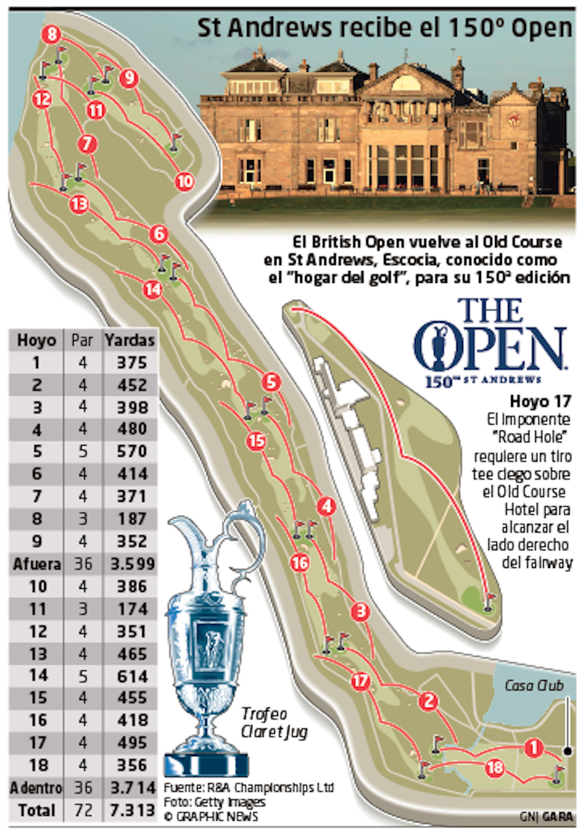El Old Course, que tiene más de 6.600 metros (Par 72) y 112 bunkers, tiene el viento como uno de los principales factores a tener en cuenta. Aunque según ha señalado en la previa Martin Slumberg, director ejecutivo del Royal and Ancient Club de St. Andrews que organiza el Open Británico, no se prevé lluvia y no habrá tanto viento como les gustaría.