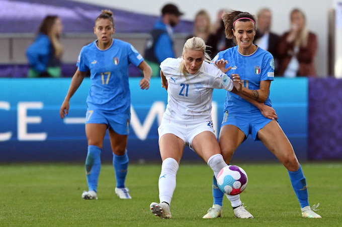 Se esperaba una Italia rabiosa tras el palo del domingo ante Francia pero la volea de Vilhjalmsdottir en el minuto tres ha dejado k.o. a las azzurre, incapaces de inquietar a su rival en todo el primer tiempo.