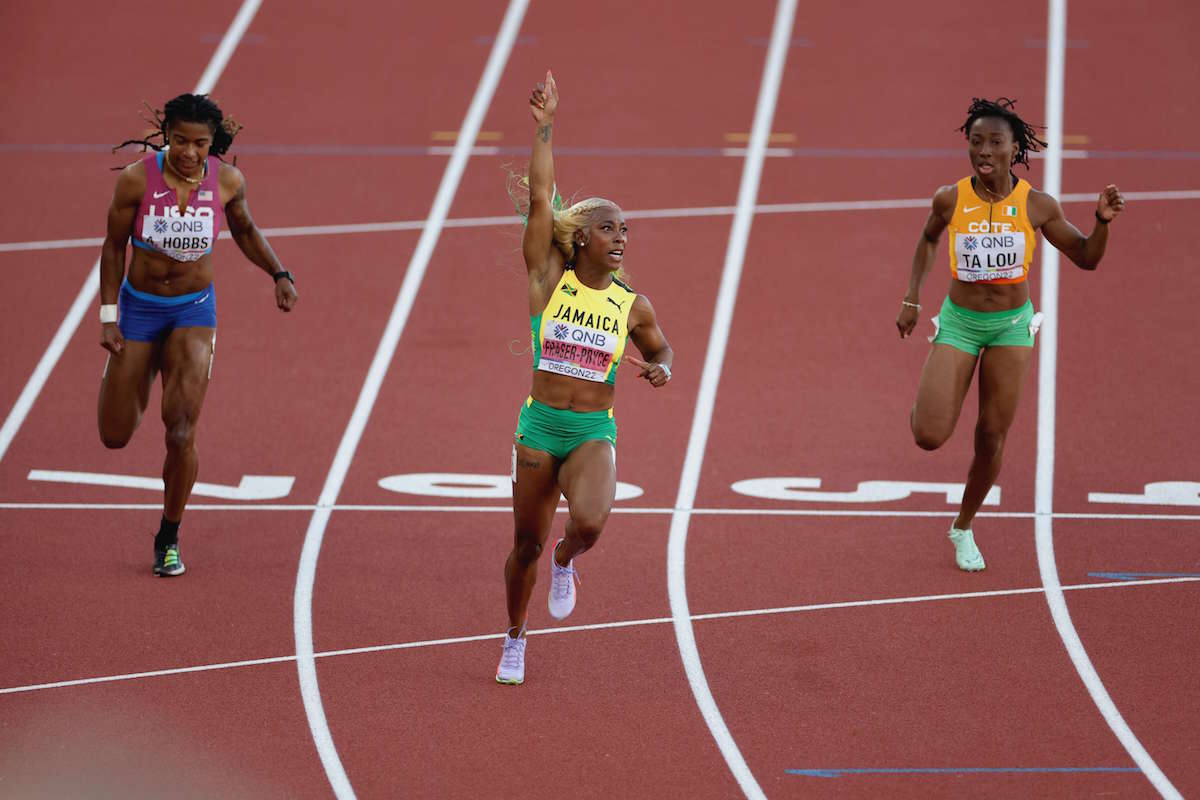 Pero el programa de los campeonatos ofreció a Jamaica una inmediata oportunidad de redención solo 24 horas después, en el esprint femenino, con un triplete jamaicano y Fraser-Pryce al frente.