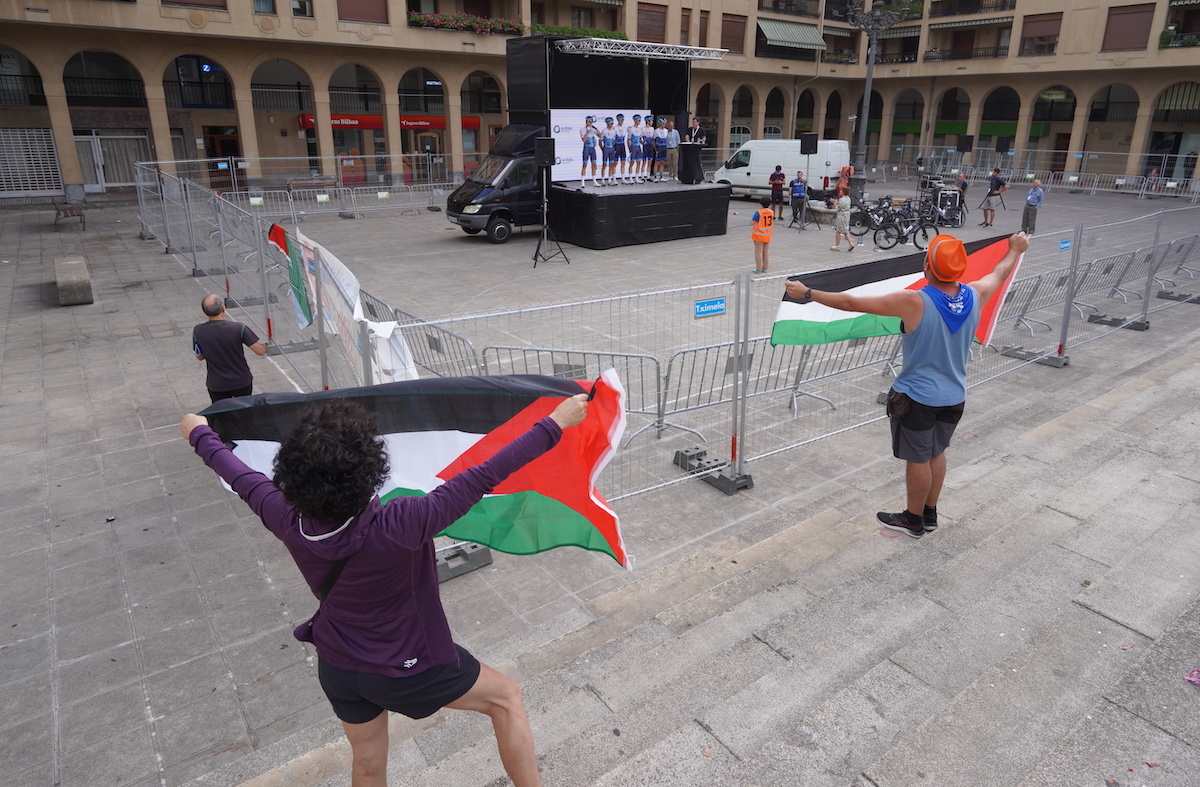 Antes de la prueba, en la presentación de los equipos, se ha llevado a cabo un acto de boikot hacia el equipo Israel-Premier Tech con el objetivo de mostrar su solidaridad con Palestina y porque «no podemos normalizar a Israel mediante el deporte».