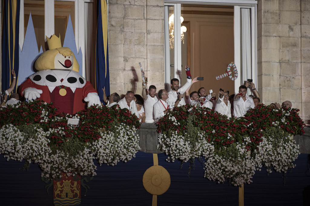 Las llaves han volado pasadas las 22.00 sobre una multitud que desde horas antes abarrotaba la plaza de la Libertad y las arterias laterales del Consistorio baionarra.