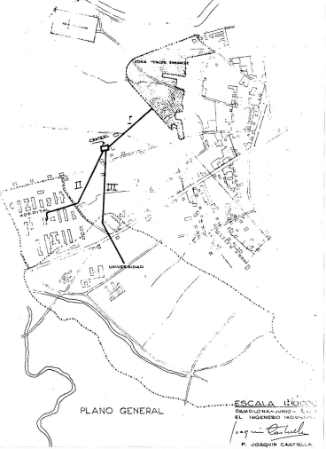 En 1960, un ingeniero con prestigio en Iruñea, Joaquín Castiella, envió una carta al alcalde. La ciudad se lanzaba a acometer una gran ampliación, el Tercer Ensanche, que incluía 3.300 nuevas viviendas, además del Hospital y la Universidad de Navarra. Este ingeniero propuso que, en lugar de colocar calderas en cada edificio, se realizara un sistema de calefacción urbana (así es como suele traducirse el anglicismo district heating) a través del que una única caldera enviaría vapor o agua sobrecalentada a los nuevos edificios.