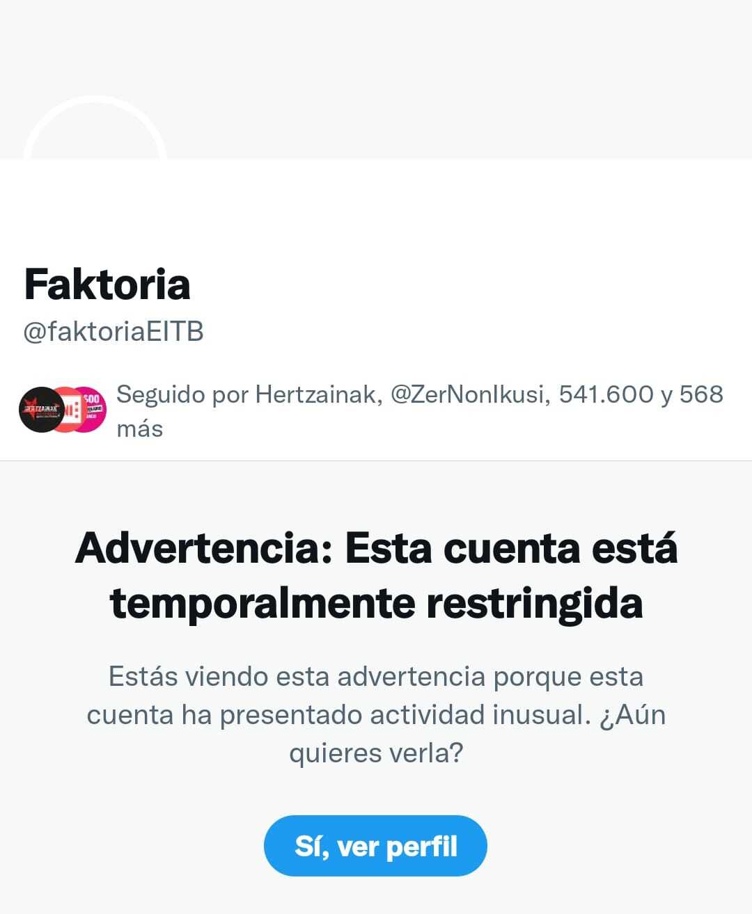 ‘Faktoria’ saioaren Twitter kontua, jarduna mugatuta.