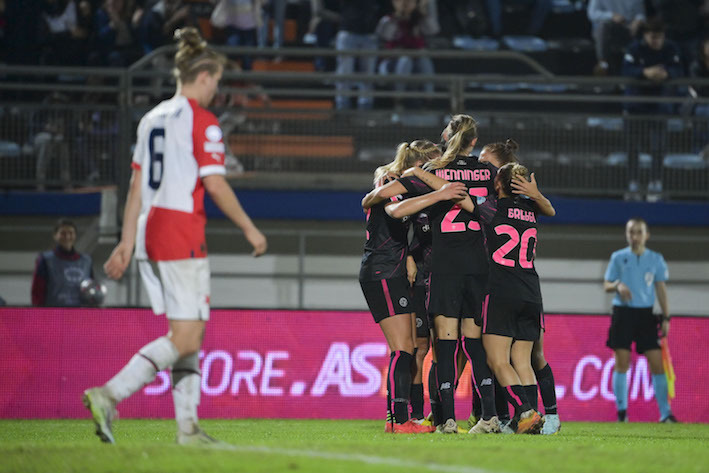Le costó más a la Roma prolongar su buen arranque de temporada. Se impuso al Slavia de Praga (1-0), concretamente, que pudo haberse adelantado en un primer tiempo igualado y lamentó después no haberlo hecho porque al cuarto de hora de la reanudación, Giacinti tocaba un balón de Haavi para hacer el 1-0. La madera repelió un remate de Nekesa en el 83, permitiendo que las italianas se apuntaran otro triunfo en su debut en la competición.