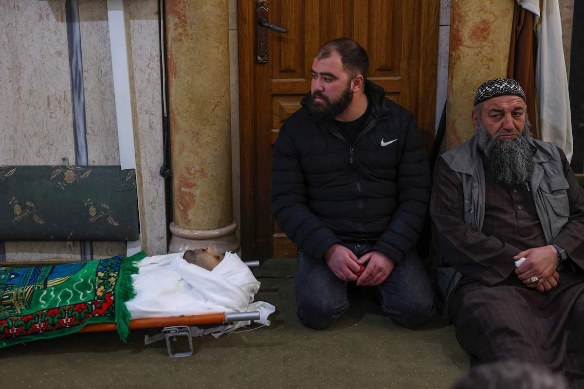 Palestinos velan el cuerpo de Nasim Abu Fuda, muerto ayer en Hebrón. (Hazem BADER | AFP)