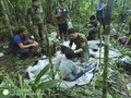En varias fotografías se ve a los cuatro menores sentados en un claro en medio de la selva, cubiertos con mantas y rodeados por militares e indígenas.