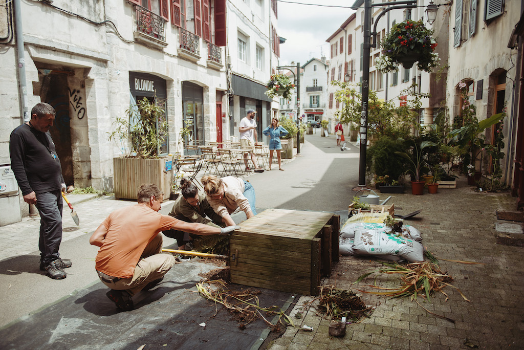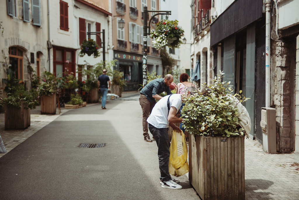 Un colectivo integrado por comerciantes y residentes de la calle Sainte-Catherine, una de las más coquetas del barrio de Sain-Esprit de Baiona, han sacado este 14 de junio los guantes y las herramientas de jardinería.