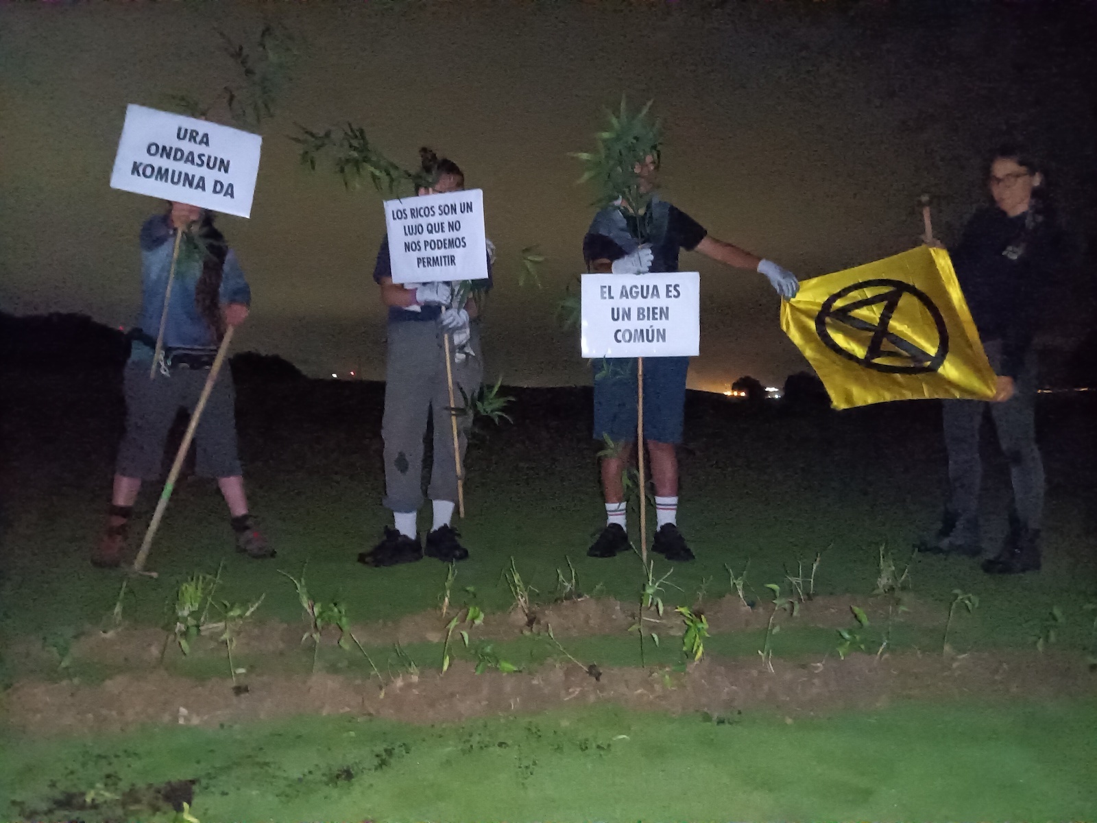 «El agua es para la alimentación», responde uno de los activistas de Bizkaia que ha accedido a la invitación de NAIZ para explicar su acción. «Jugar al golf en un ocio de lujo que es incompatible con el entendimiento del agua como un bien común, como un elemento básico. Hay restricciones en muchos territorios, mientras que aquí se usa el agua para el entretenimiento de unos pocos».
