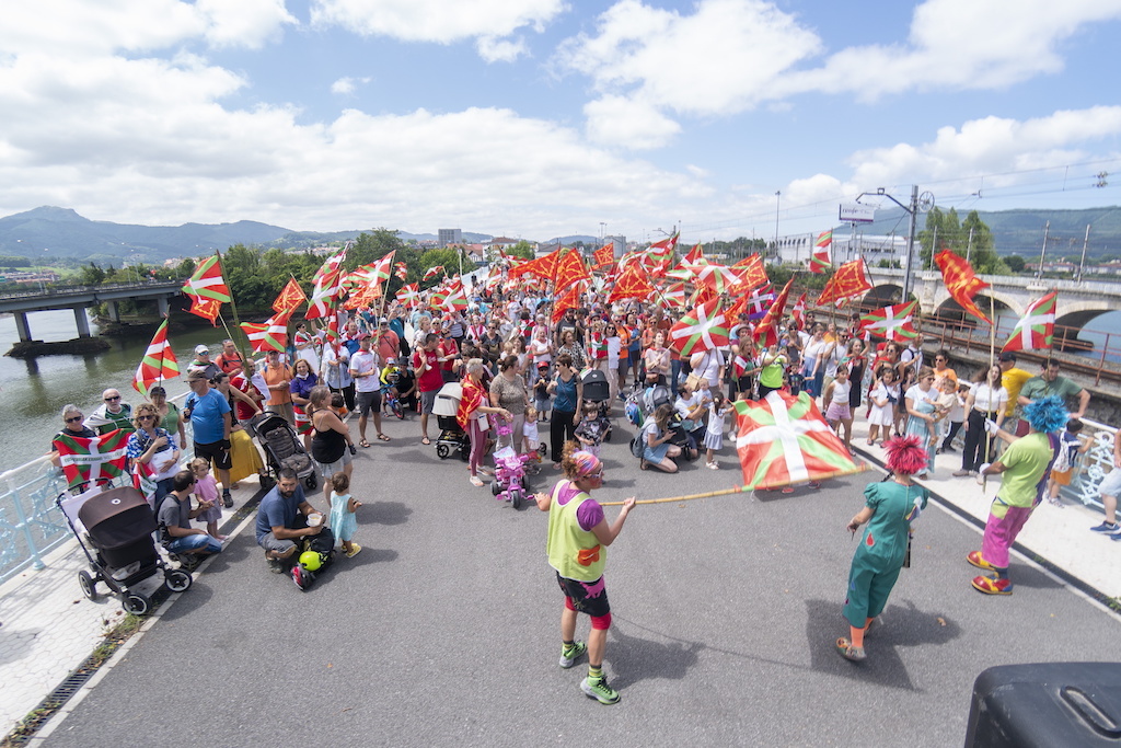 De ese día queda una imagen icónica, con Pirritx, Porrotx y Marimotots cantando, rodeados de centenares de manifestantes en el puente Avenida, en un acto, organizado por Gure Esku, que se tradujo en una reivindicación con sonrisas de la territorialidad de Euskal Herria.