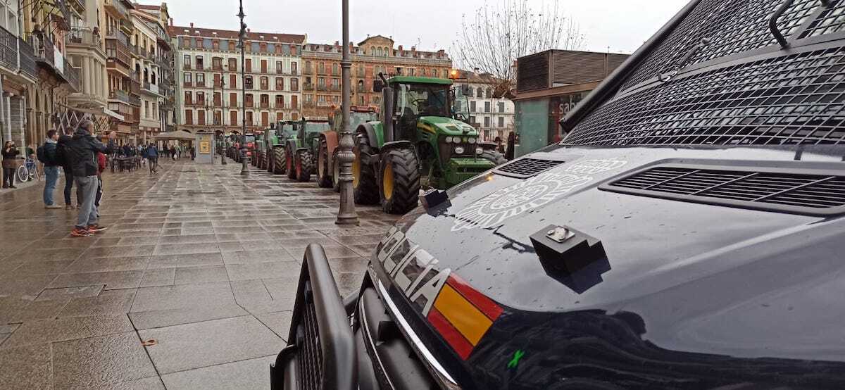 A media tarde, varios tractores han entrado hasta el mismo centro de Iruñea, la Plaza del Castillo, por donde han dado varias vueltas vigilados por un cordón policial. Luego han seguido por las avenidas céntricas y tenían intención de pasar la noche instalados en calles como Baja Navarra.