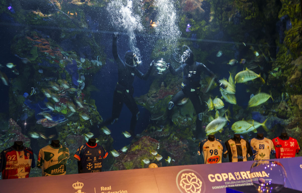 El acto ha tenido un desarrollo muy brillante con la extracción del trofeo de la gran pecera del Aquarium por dos buzos, además de contar con la presencia de representantes de los ocho equipos que se disputarán uno de los títulos más importantes del balonmano estatal.