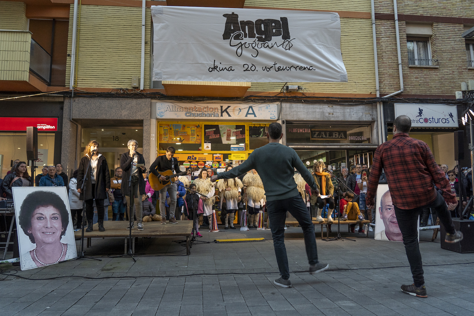 Justo después, ha llegado un momento, si cabe, más emotivo. Ante las dos fotografías se ha bailado un aurresku diferente. Sin txistus, ni trajes tradicionales. Ha sido cantado por dos vecinas (Irati y Silvia), pues el aurresku tiene letra, acompañadas por una guitarra.