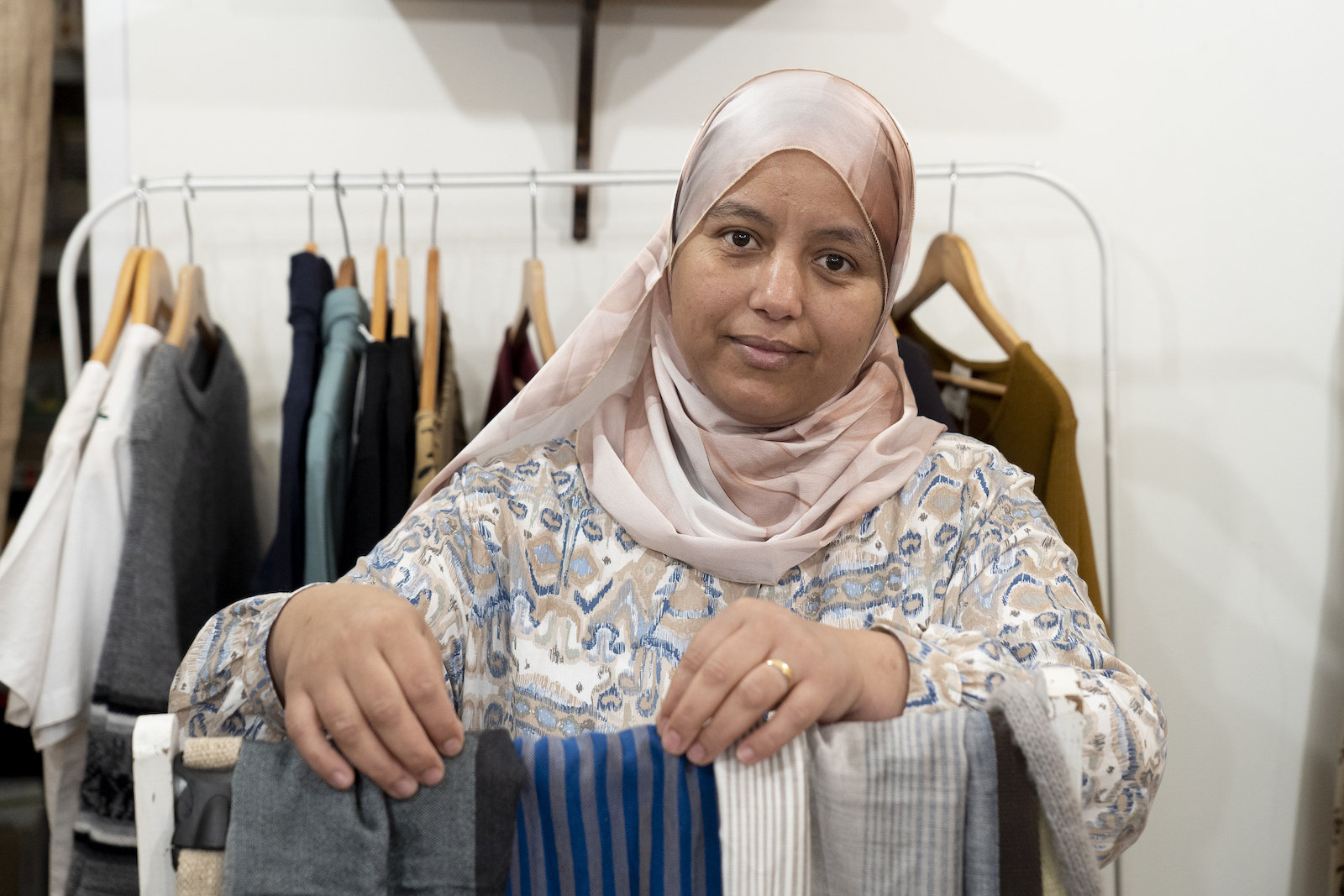 Nadia Ahesbi: Empecé con 18 años y pronto empecé en costura. En 2016 entré en la empresa Espamatex, donde estuve durante seis años. Me despidieron estando embarazada. En aquella fábrica no había elementos de seguridad ni de prevención de riesgos. No teníamos siquiera una zona donde descansar. Las embarazadas no tienen derecho a nada. Y las mujeres con hijos no tienen posibilidad de darles leche. No puedes alimentar al bebé en la fábrica y tampoco te dejan salir. Como mínimo había que estar las ocho horas, pero los pedidos eran muchos, trabajábamos obligatoriamente más. Da igual qué te ocurra, no te dejan salir antes. Los jefes y encargados nos metían mucha presión. Si pides algo, corres el riesgo de que tomen represalias.