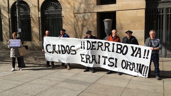 Mientras Ollo hacía estas declaraciones, en el exterior, un grupo de personas se había concentrado ante el Palacio de Diputación detrás de una pancarta en la que se podía leer ‘Caídos ¡¡derribo ya!! Eraitsi orain!!’.