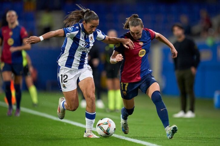 No ha dado todavía la Real, lamentablemente, ese último paso y en la mayoría de sus últimos enfrentamientos con las catalanas hasta los pequeños objetivos han acabado despedazados por la voracidad del campeonísimo. Pero a veces hay destellos que alivian el trámite y el ánimo y la de esta noche ha sido una de ellas. La mayor agresividad que ha mostrado en la segunda parte el equipo txuriurdin ha permitido que su rival estuviera a ratos más alejado de Lete y que espaciase sus llegadas al área. Ha mirado, además, arriba cuando ha podido y así han nacido una gran acción de Eizagirre que, tras arrastrar a cinco rivales dejaba perfecto en el área para Cecilia, a la que el control se le ha ido largo en una ocasión clarísima; y el gol de Lucía Pardo. Emma ha enviado largo en busca de Franssi, Cata Coll se ha liado en el borde del área y Lucía Pardo se ha quedado el balón para macar un golazo desde el costado derecho.
