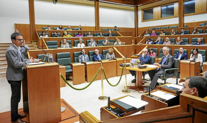 En la introducción de su propuesta, Otxandiano destacó que EH Bildu observa con «agrado» que «frente a lo que Imanol Pradales dijo en campaña, sí que hay un espacio semántico común en el discurso del lehendakari y en el de EH Bildu, y eso es importante porque apunta a que hay bases para un análisis compartido».