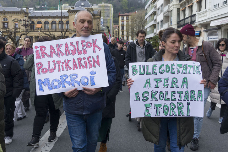 Malestar entre la mayoría sindical en la enseñanza pública no universitaria tras la reunión que han mantenido este viernes en Gasteiz, donde no se ha cerrado un acuerdo. El Departamento de Educación se ha limitado a realizar una propuesta verbal sobre recursos, «insuficiente» para la representación del profesorado, que pide mayor concreción y que se aborde la tabla reivindicativa que les mantiene en lucha.