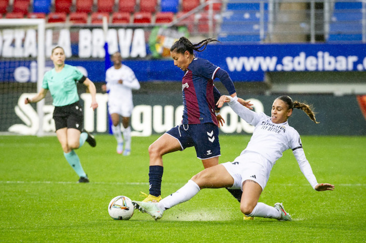 Lakrar intenta impedir que Andrea Álvarez se lleve el balón. (Jaizki Fontaneda | Foku)