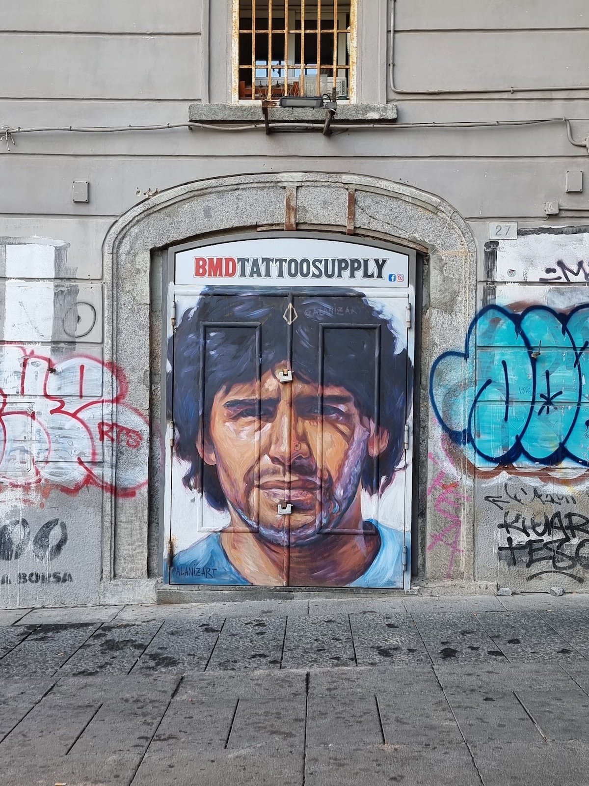 Maradona devolvió el dañado orgullo al pueblo napolitano. Endiosado y santificado, hoy en día se pueden ver centenares de camisetas, murales y tatuajes con la cara del “Pibe de Oro”, siempre omnipresente en las paredes, balcones y comercios locales. Cuentan sus vecinos que el delantero se querelló con varias marcas por utilizar su imagen sin permiso, pero que dio su beneplácito al pequeño comercio para diseñar un sinfín de carteles con su cara.