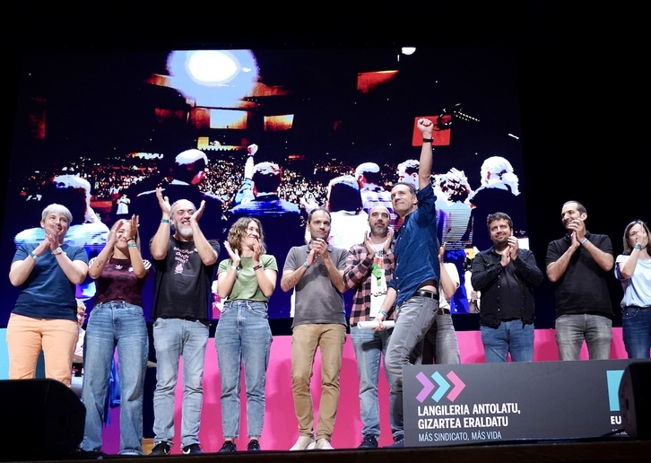 ELA ha cerrado este martes su XVI. Congreso Confederal, donde los y las 736 congresistas han mostrado su apoyo total a la nueva ponencia y al Comité Ejecutivo que, liderado otra vez por Mitxel Lakuntza, contará con tres caras nuevas: Ane Bilbao Alzelai (Gasteiz, 1993) como responsable de Servicios Jurídicos; Luis Fernández Centeno (Iruña, 1973) en Sindicalización, Militancia y Actos confederales; y Unai Oñederra Egaña (Donostia, 1973) en Formación, Iparraldea y estrategia soberanista. El sindicato apuesta por seguir construyendo el contrapoder organizando a la clase trabajadora.
