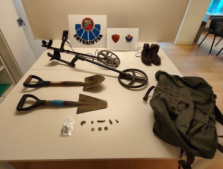 El 18 de abril pasado agentes de la sección de Miñones procedieron a la identificación ‘infraganti’ de dos hombres y a la ocupación de dos detectores de metales y dos palas, así como de cinco piezas arqueológicas metálicas y algunas monedas. Los restos arqueológicos ocupados a los autores fueron enviados al Museo de Arqueología de Araba.