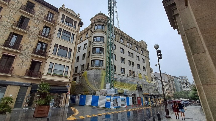 El edificio de la calle Ijentea 2, junto al Boulevard de Donostia, sigue dando de qué hablar. La reforma del bloque de viviendas encara la recta final y ya se ha desmontado la mayor parte del andamio. Finalmente serán 28 los pisos construidos, tras muchos dimes y diretes de los que ya se dio cuenta en este medio en un extenso reportaje publicado en febrero.