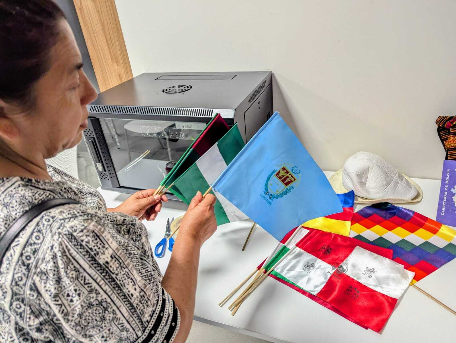 La última mujer en hacer entrada reparte banderines de mano con la bandera boliviana. «Creo que deberíamos comenzar poniendo nuestro himno nacional», propone. Las demás aceptan encantadas.