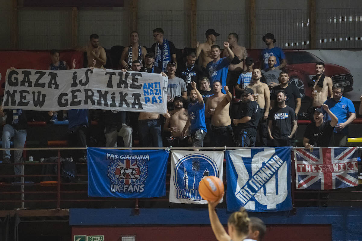 Jugadoras como Ane Olaeta –ha anotado dos puntos al contraataque–, Castedo, con un triple final a falta de un segundo, Joy Adams, con otro lanzamiento de tres, o Ángela Salvadores han hecho daño a las griegas. Eso no ha cejado en los ánimos de los seguidores griegos, pocos pero bulliciosos en las gradas de Maloste, y además reivindicativos al denunciar el genocidio que está cometiendo Israel sobre Gaza con una pancarta en la que se podía leer: «Gaza is the new Gernika» (Gaza es la nueva Gernika).