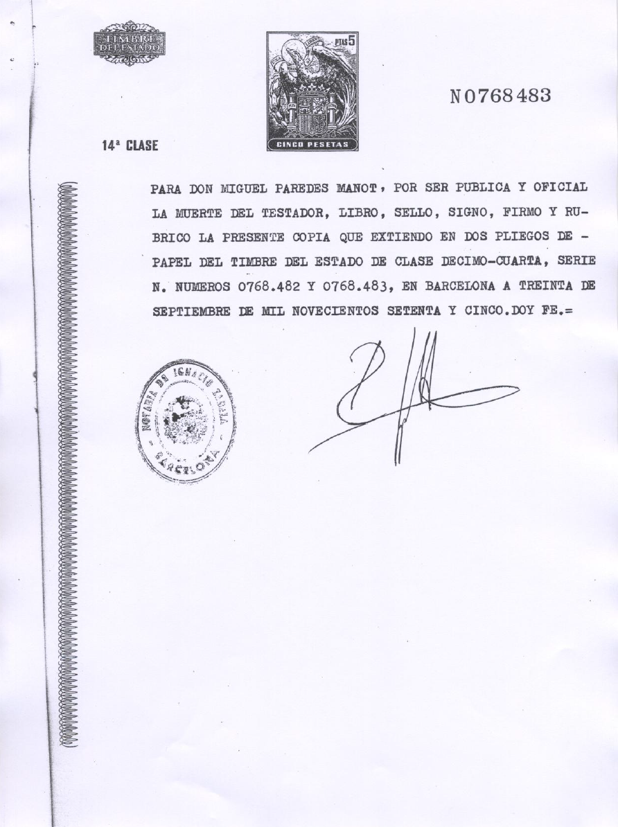 Portada del testamento notarial al que ha accedido NAIZ, fechado el mismo día en que le quitaron la vida.