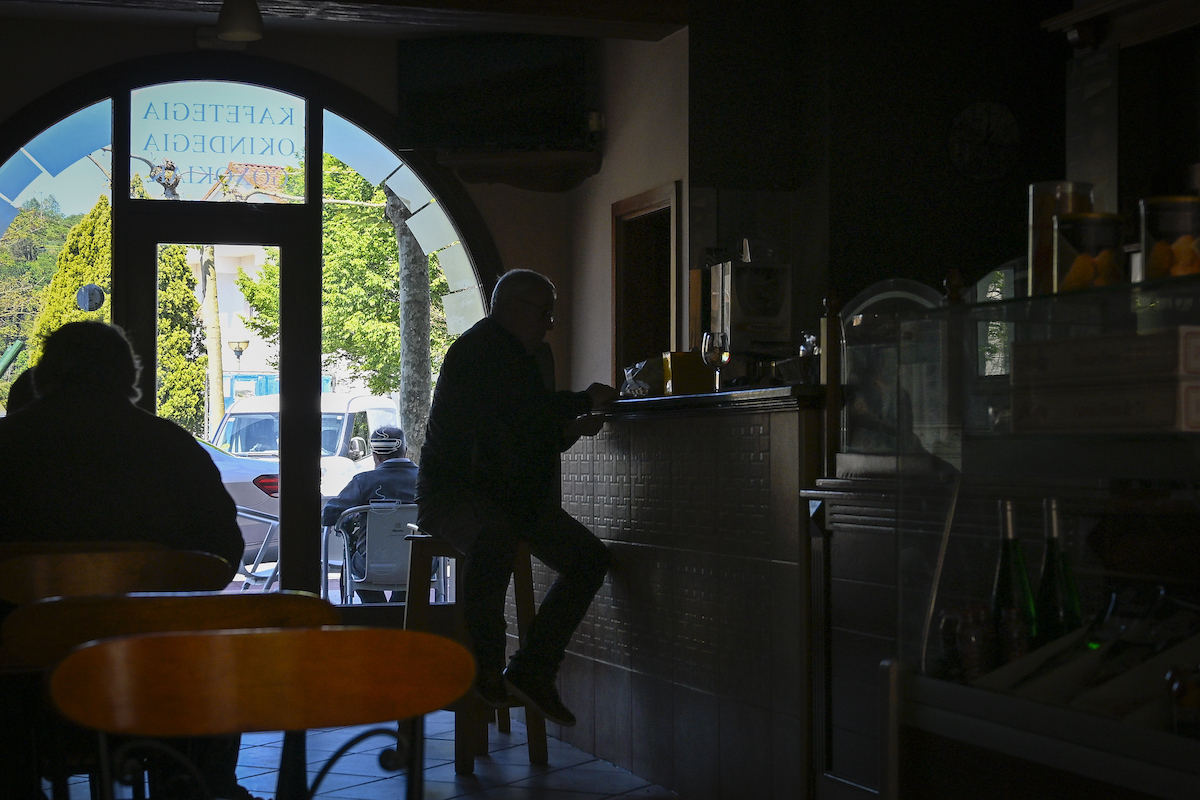 Establecimiento hostelero a oscuras durante el apagón del 28 de abril. (Gorka RUBIO | FOKU)